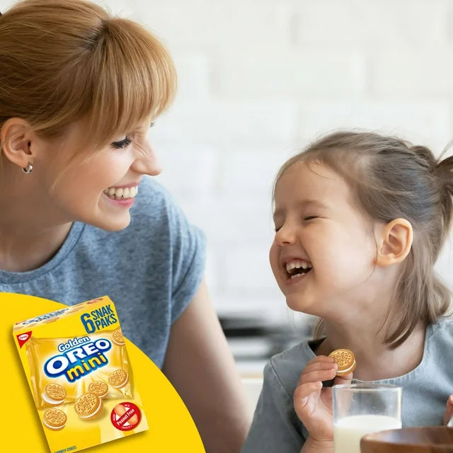 • This 150g package contains six snack packs of Golden OREO Mini Sandwich Cookies